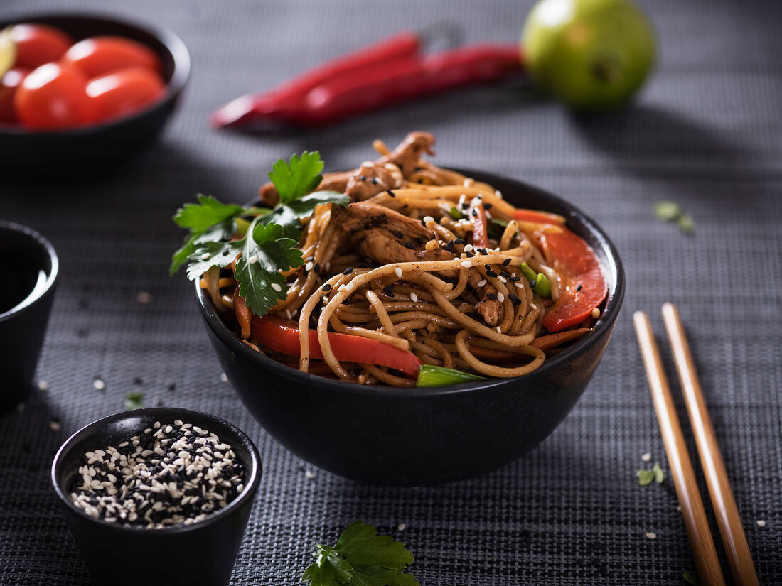 Բրնձի լապշա բանջարեղենով և Սոյայի սոուսով