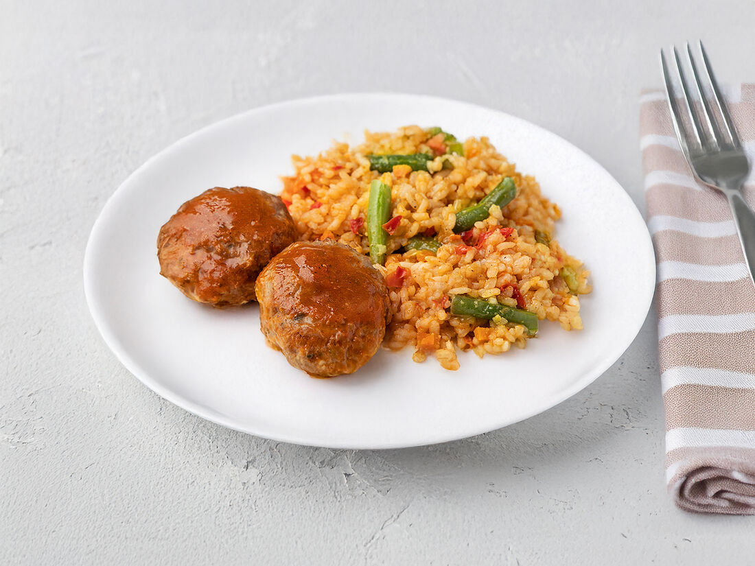 Мясные котлеты с рисом и овощами