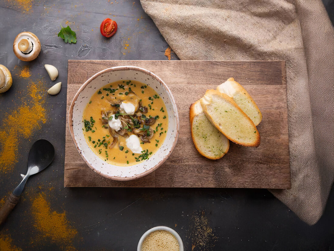 Тыквенный суп с рикоттой и шампиньонами