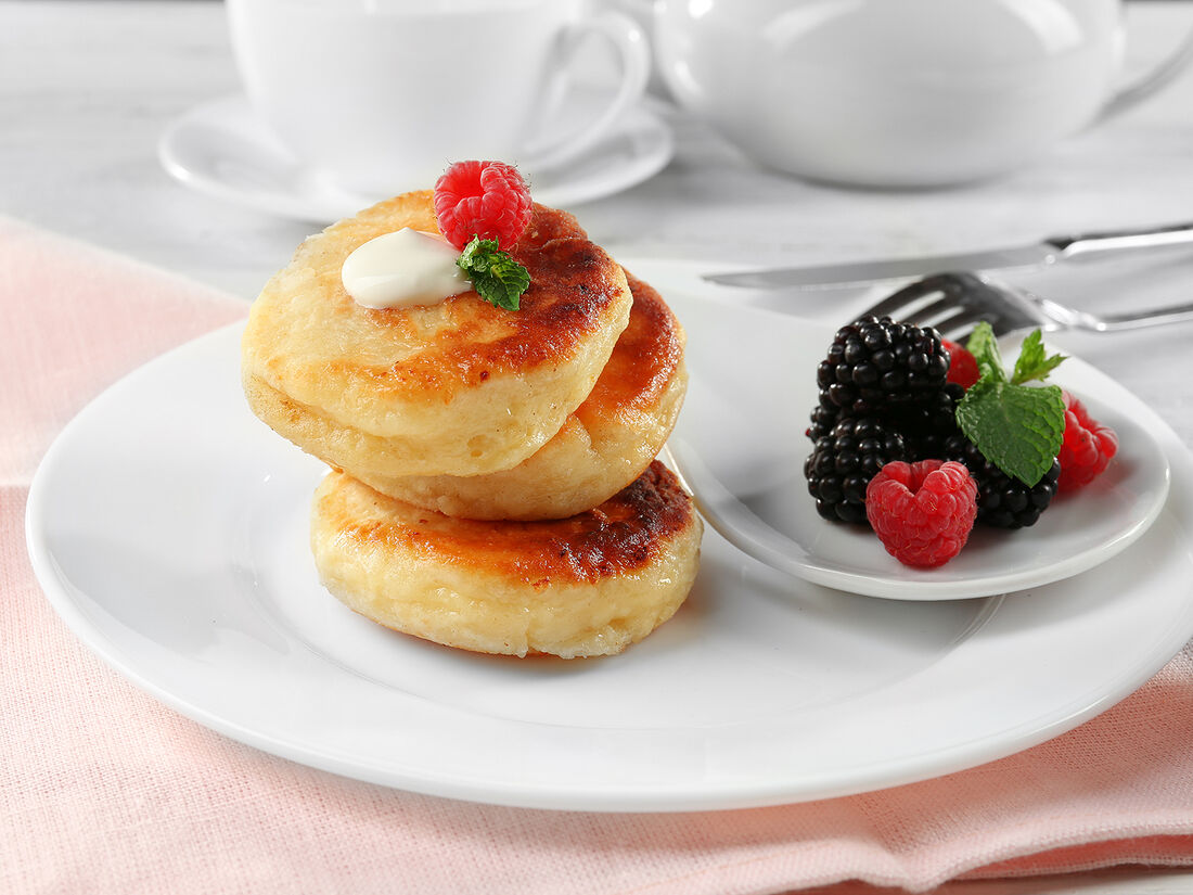 Сырники с джемом и домашней сметаной