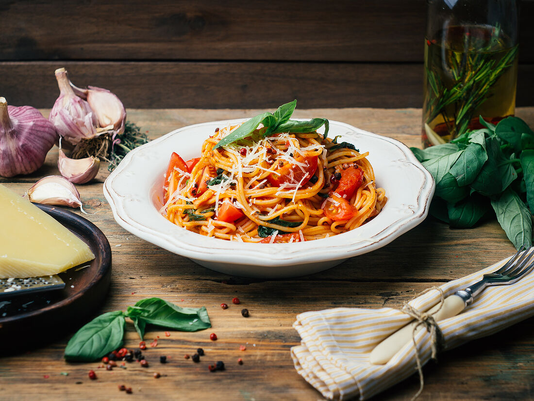 Паста с морепродуктами в томатном соусе