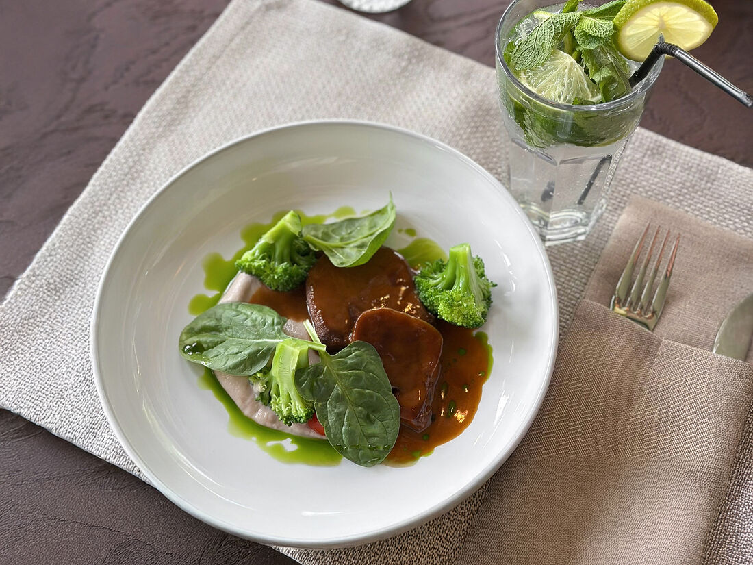 Язык теленка с пюре из корня сельдерея и сливочным соусом