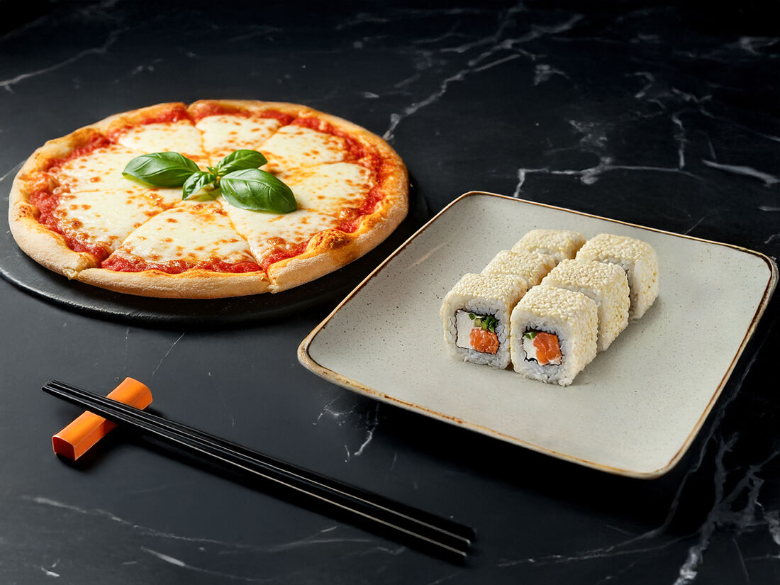 Маки, запечённые с мидиями в соусе спайси