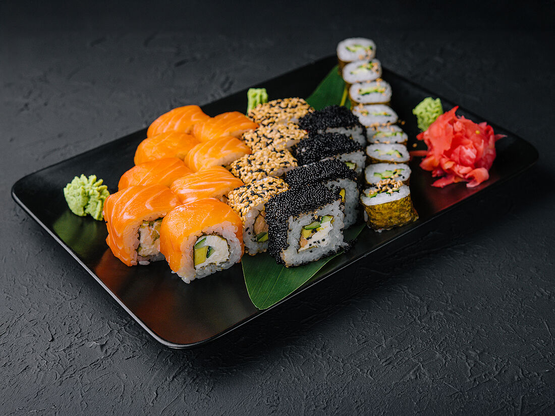 Запеченный шеф-ролл с угрем и лососем