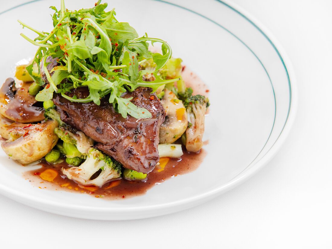 Говяжья вырезка с орзо, грибами и сливочной страчателлой