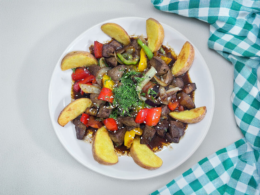 Печень с овощами