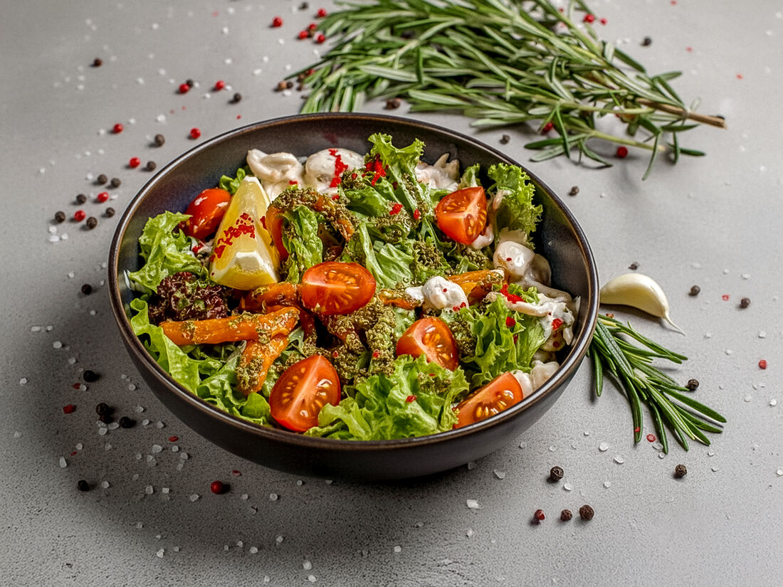 Салат зеленый с морепродуктами