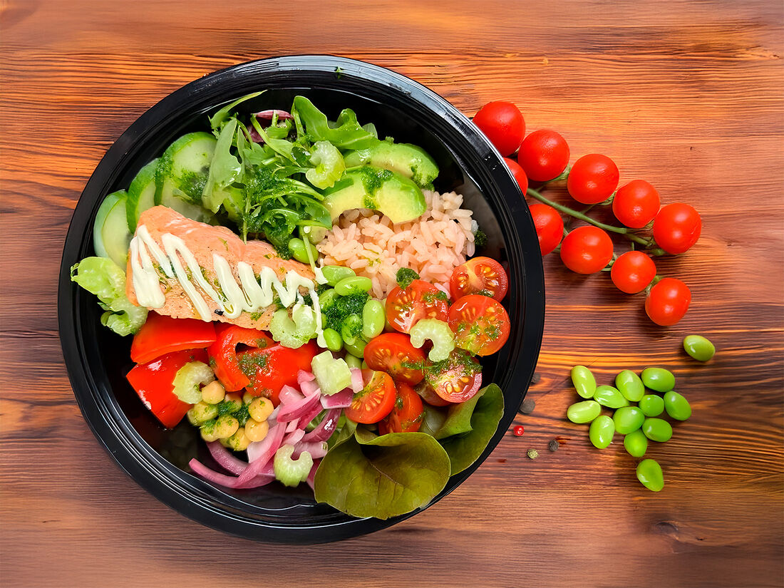 Микст-обед с запеченной кетой с розовым рисом