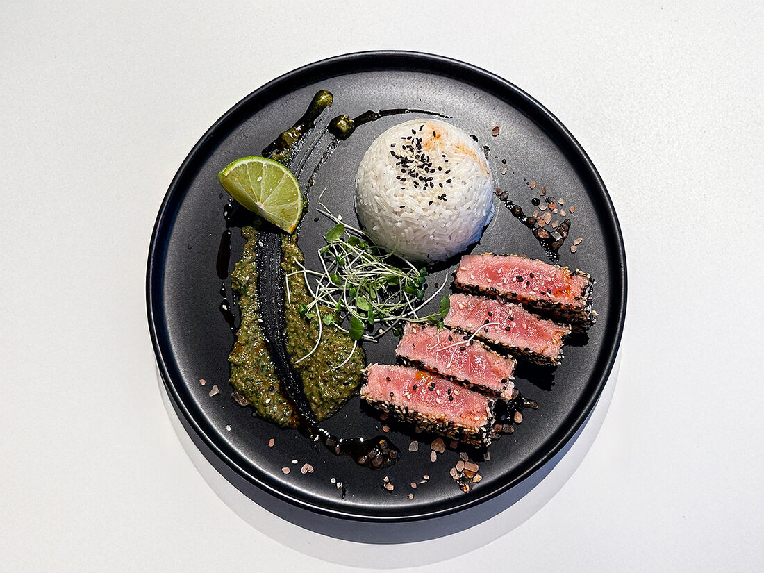 Стейк из тунца с кокосовым рисом