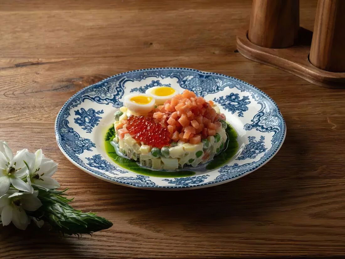 Тартар из лосося с авокадо и клубникой