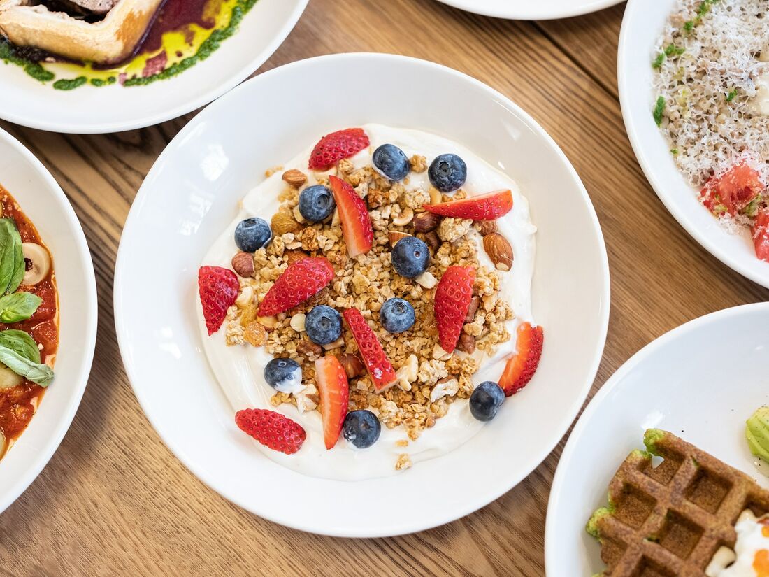 Греческий йогурт с гранолой и смородиной
