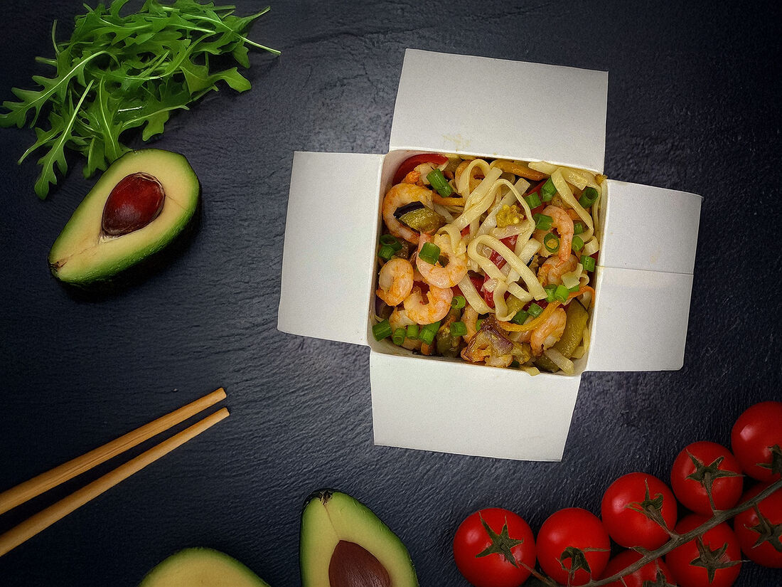 Лапша гречневая с креветками