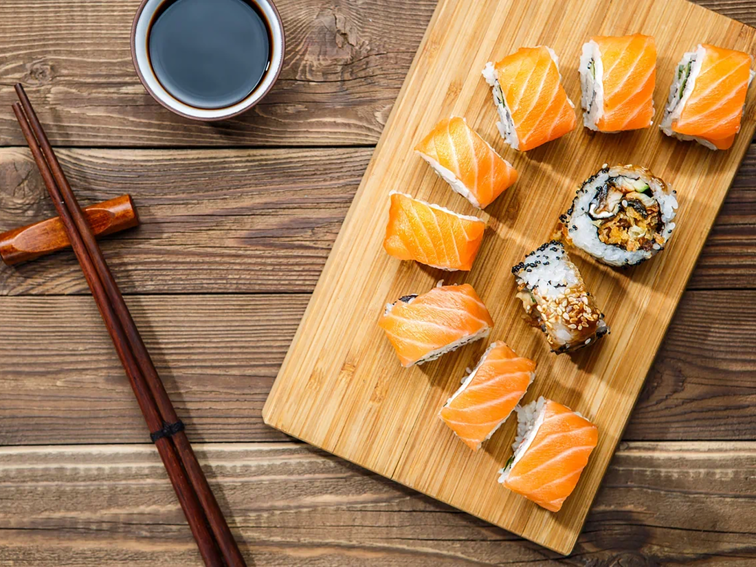 Ролл с форелью и чукой