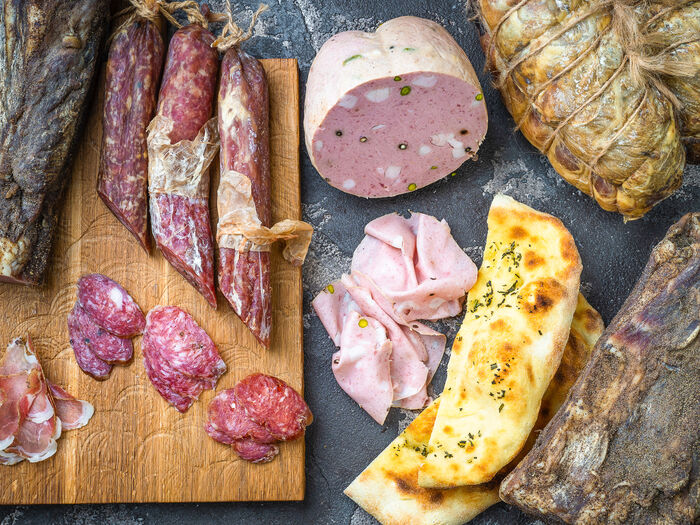 Фокачча с мортаделлой, страчателлой и песто