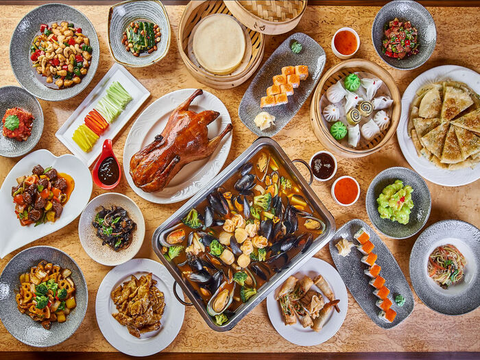 Утка по-пекински с блинчиками и овощами