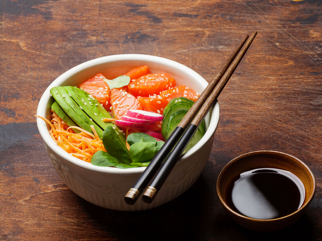 Поке с лососем и рисом