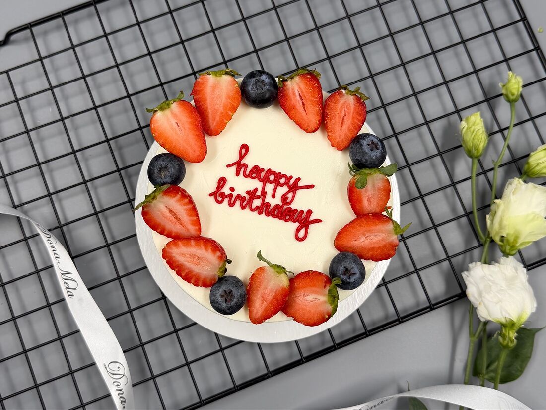 Бенто-торт С днём рождения с клубникой и голубикой