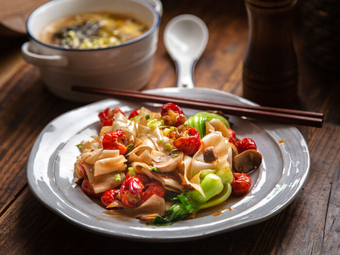 Пшеничная лапша со свининой и овощами