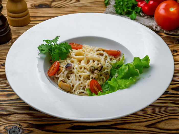 Паста с курицей и грибами