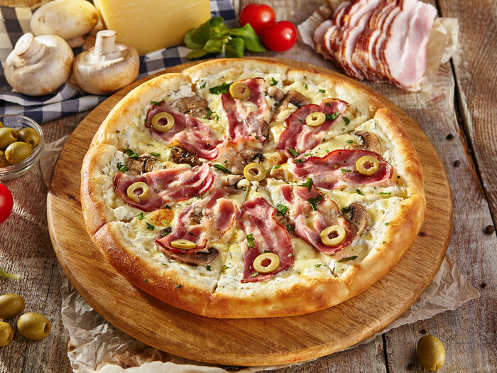 Пицца с ветчиной и белыми грибами