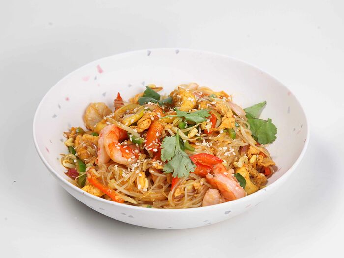 Лапша Пад-тай с курицей и креветками
