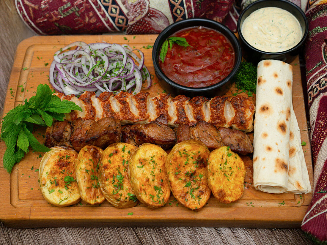 Комбо-обед из люля с картофелем на мангале
