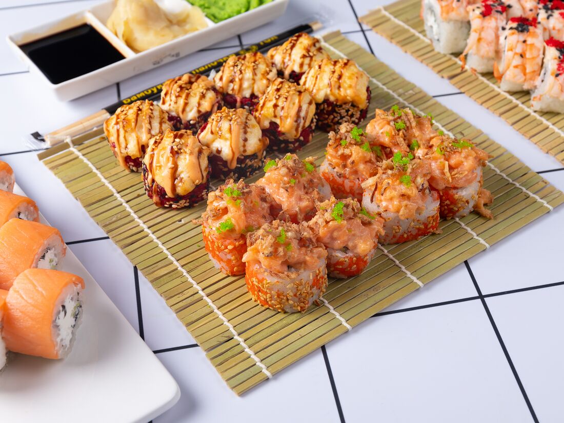 Запеченный ролл с лососем тартар