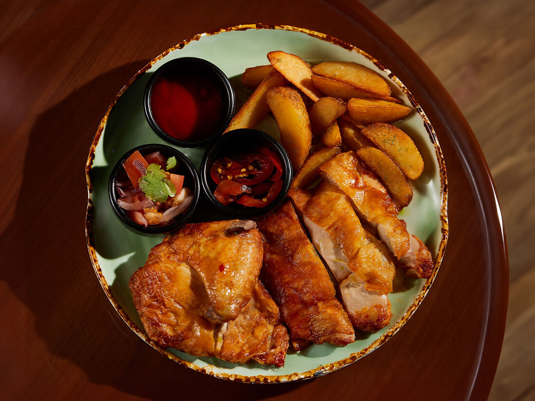 Половина цыпленка с картофельными дольками