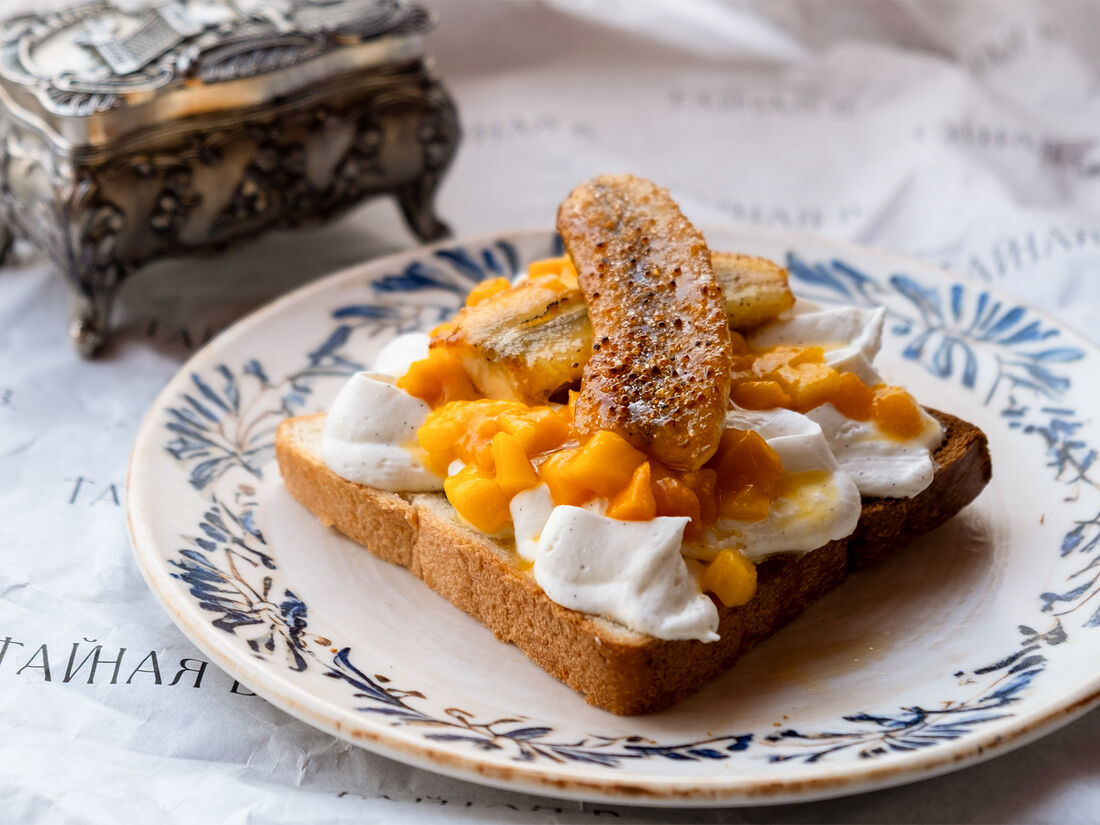 Вафля Манго и банан с ванильным кремом