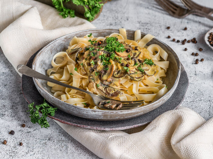 Паста с курицей и грибами