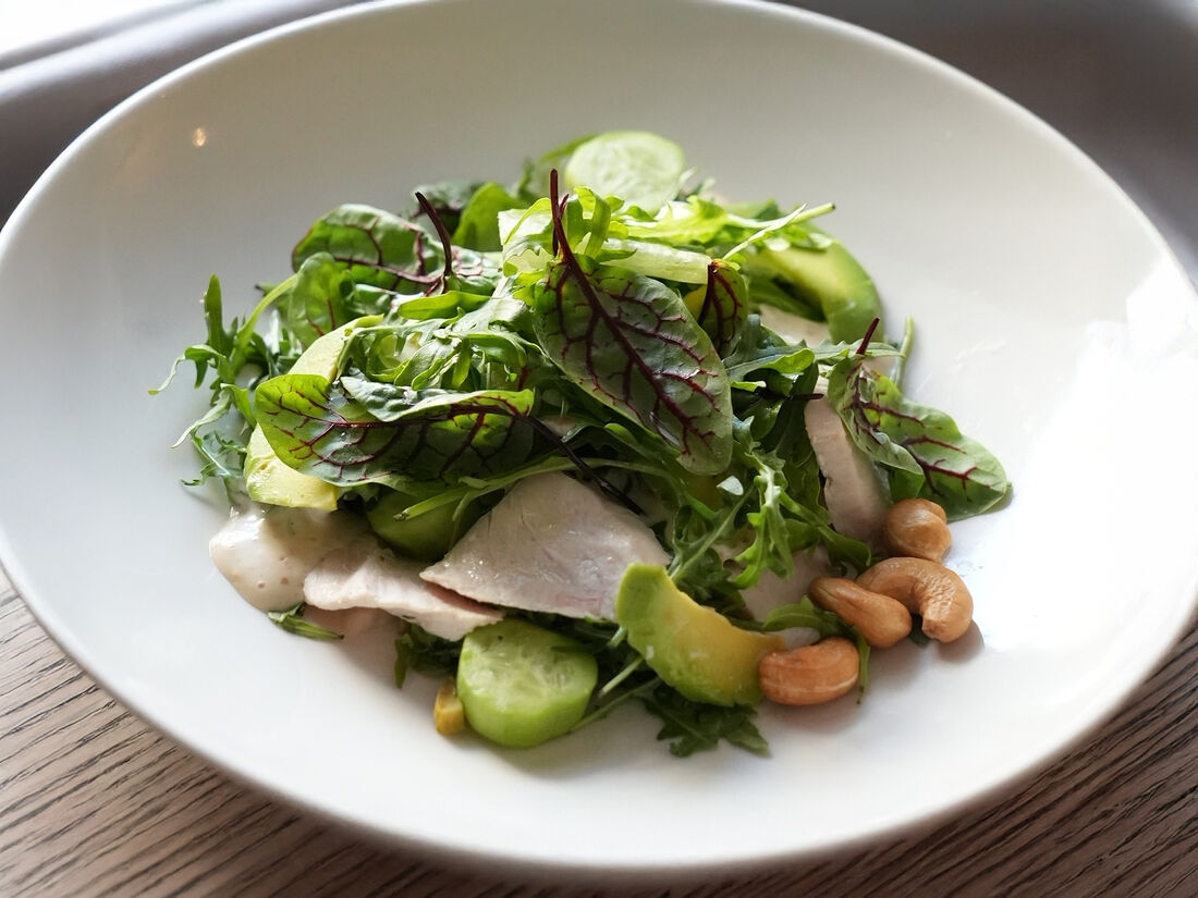 Салат с куриным филе, авокадо, орешками кешью