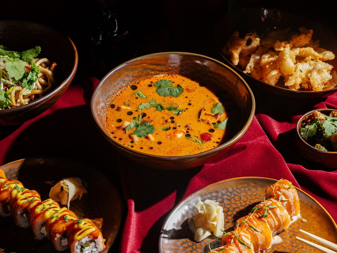 Том ям, морепродукты, рис