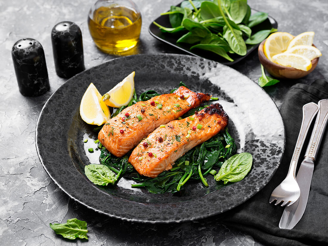 Дорадо на подушке из шпината