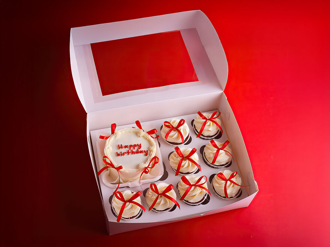 Бенто-торт и 8 капкейков с бантиками
