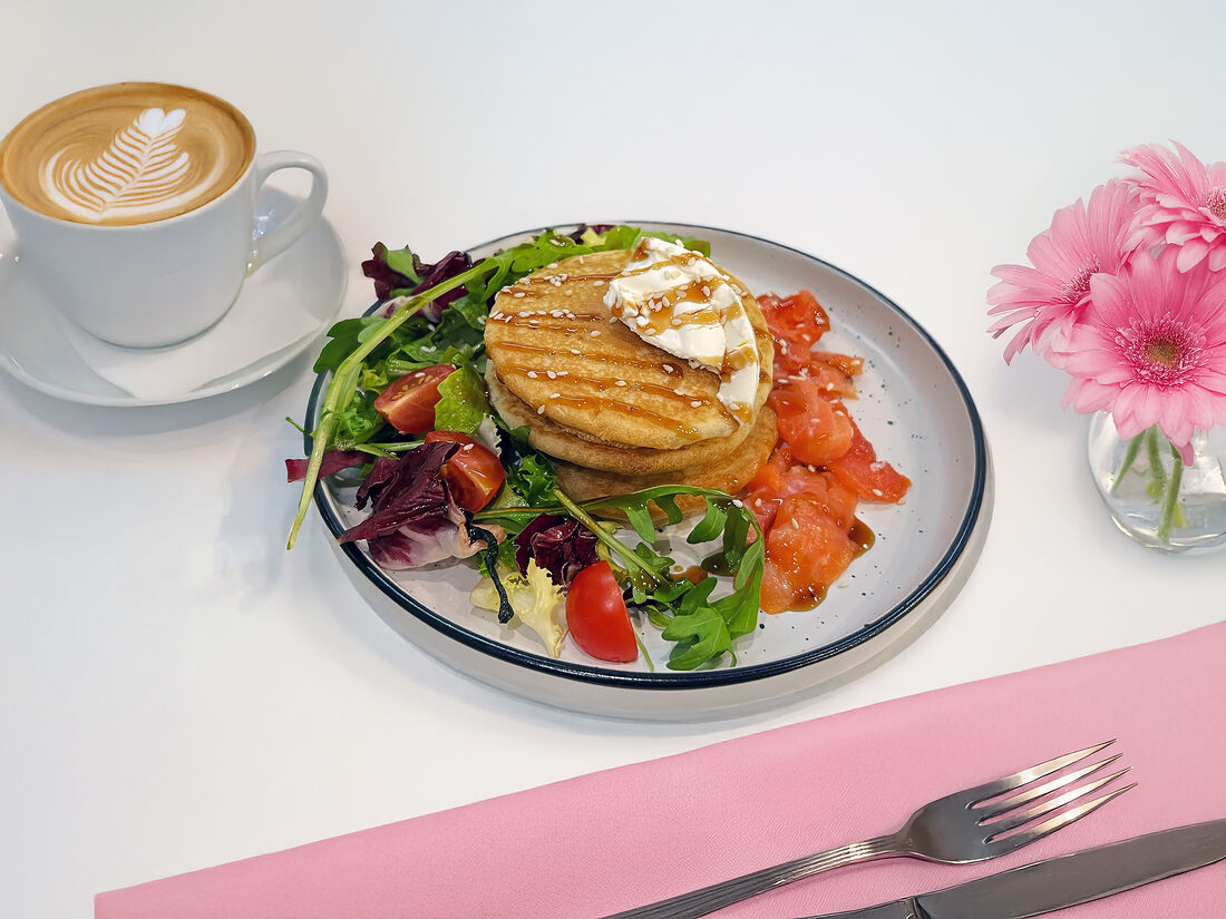 Картофельные драники с форелью и сметаной