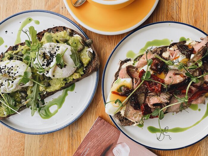 Д Бутерброд с креветкой, авокадо и яйцом на цельнозерновом