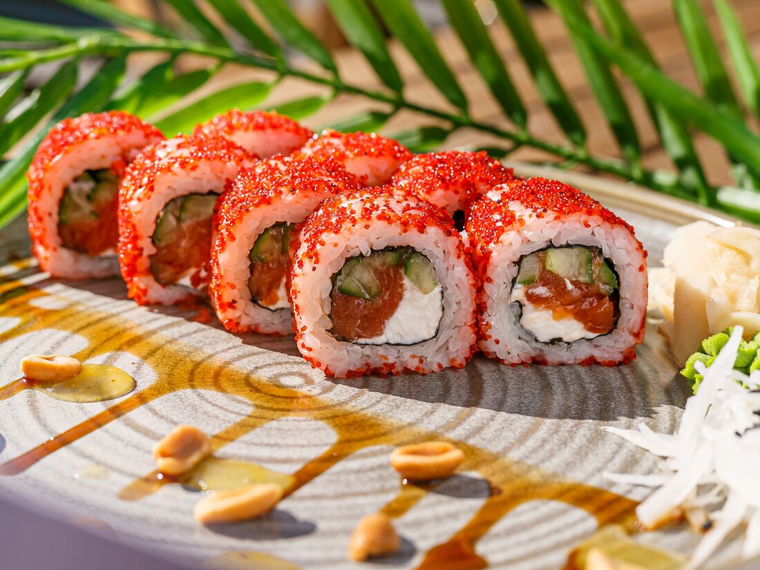 Сливочный маки-ролл с лососем