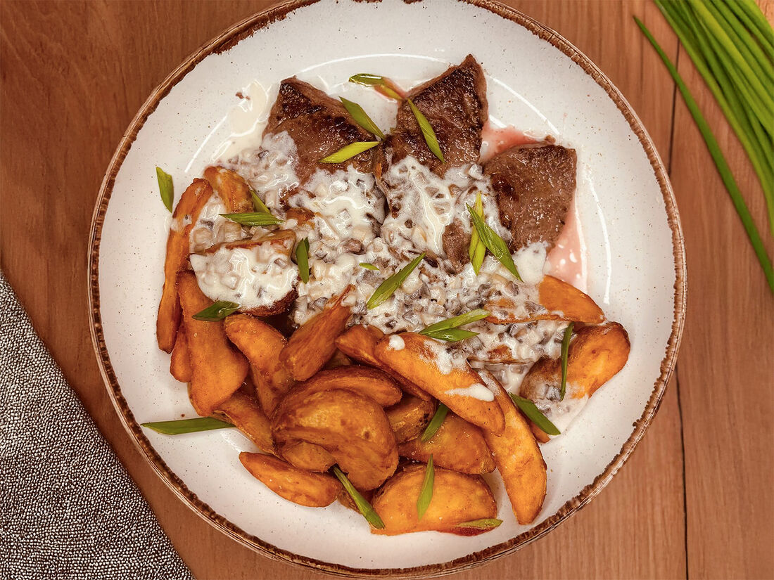 Медальоны из свинины с грибным соусом