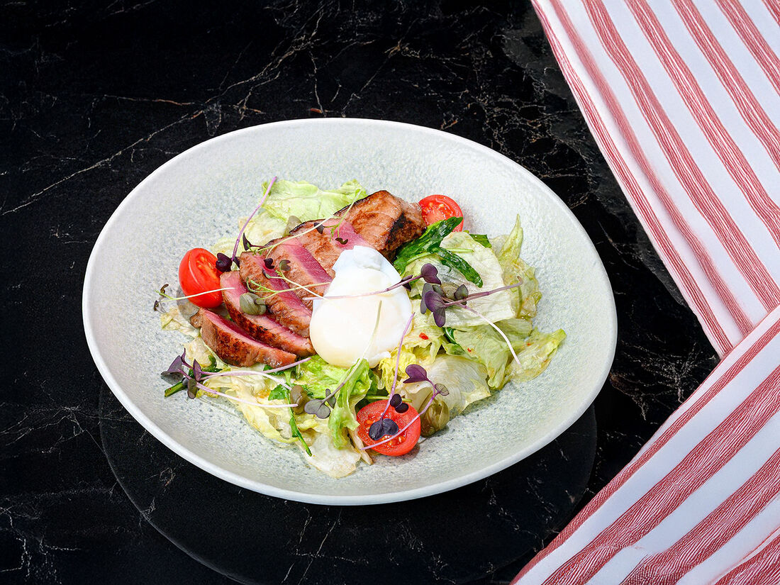 Салат с тунцом и яйцом пашот