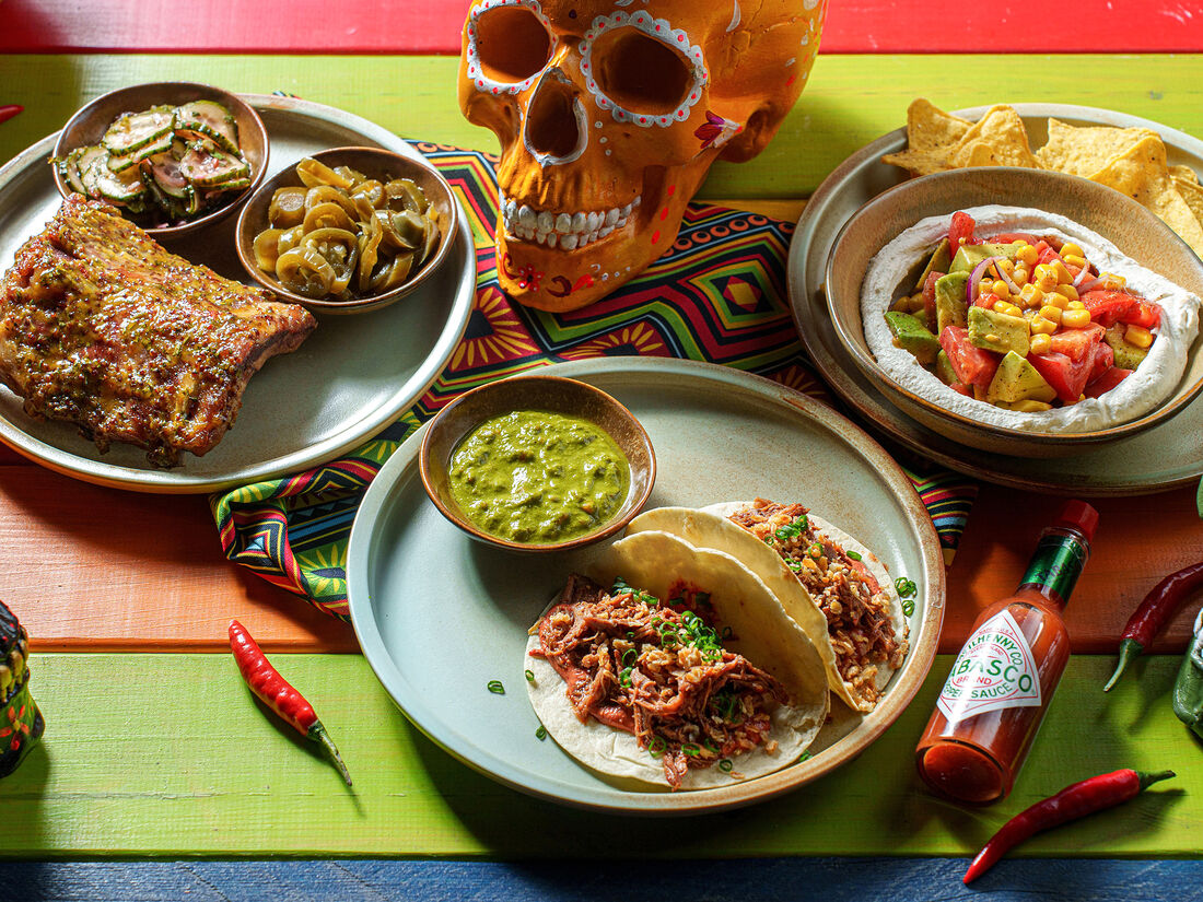 Томленые ребра с огурцами и халапеньо